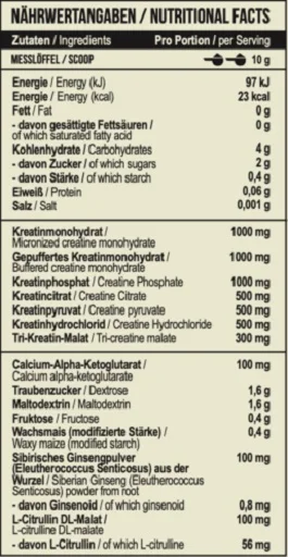 ?? Warum ein Kreatin-Mix sinnvoll ist Die meisten Kreatinprodukte setzen auf nur eine einzige Form – meist Monohydrat. Das funktioniert, aber warum sich limitieren? MST® Creatine Kick verfolgt einen anderen Ansatz: ? Unterschiedliche Löslichkeitsprofile Mehrstufige Verfügbarkeit ? Optimierte Aufnahme ? Hohe Gesamtdosierung pro Portion (4,8 g Kreatin) Kurz gesagt: ? Mehr Formen = mehr Synergie = mehr Trainingspotenzial.